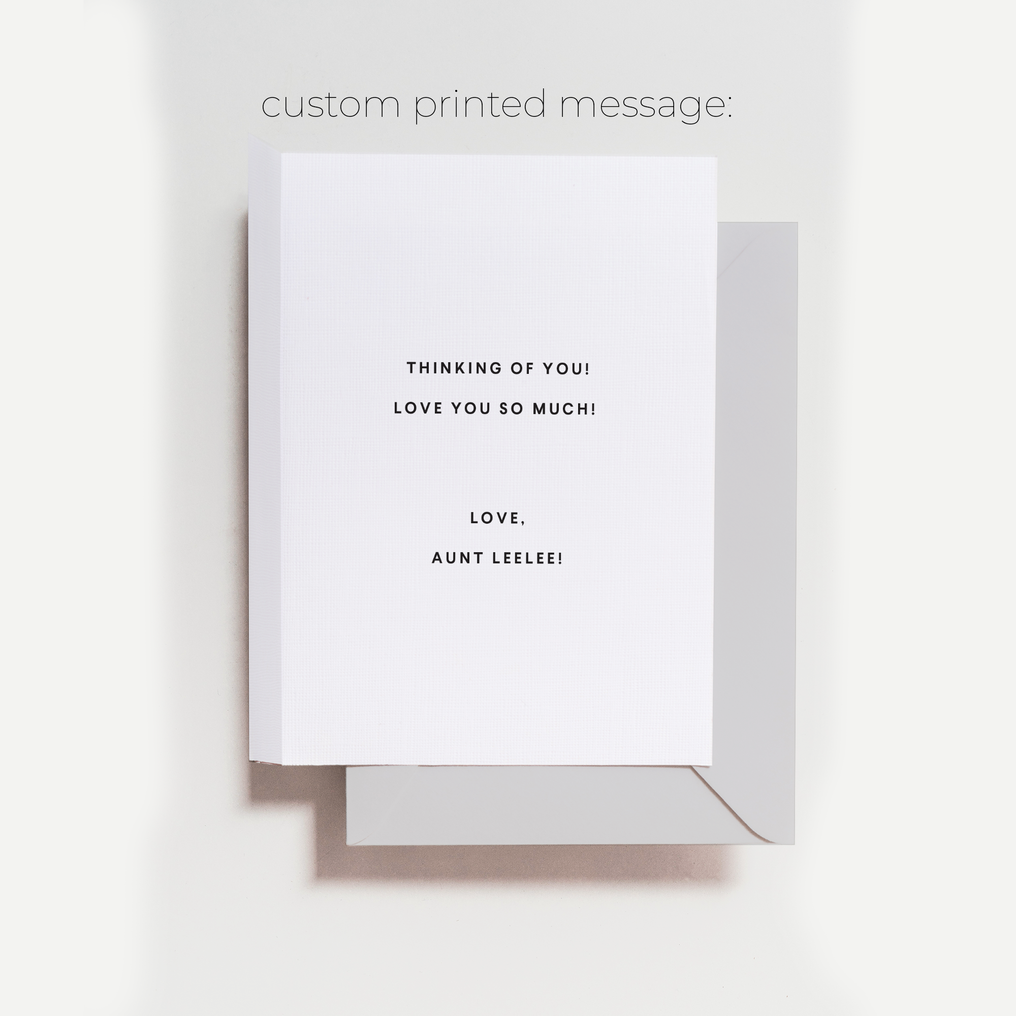 We know you’re excited to receive your order. As soon as your card hits the mail, you will receive a tracking number via email so you can follow its journey from our studio to your doorstep.