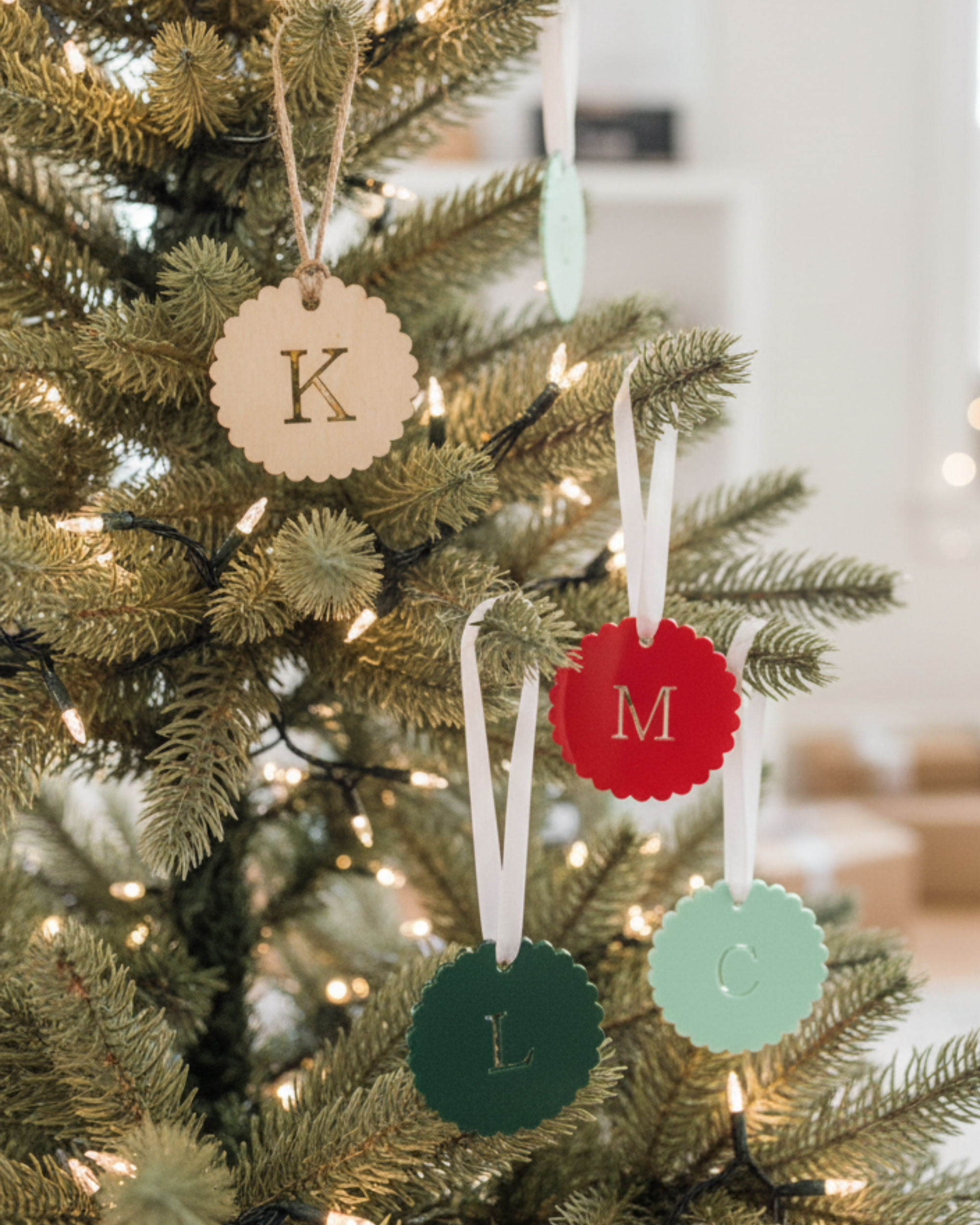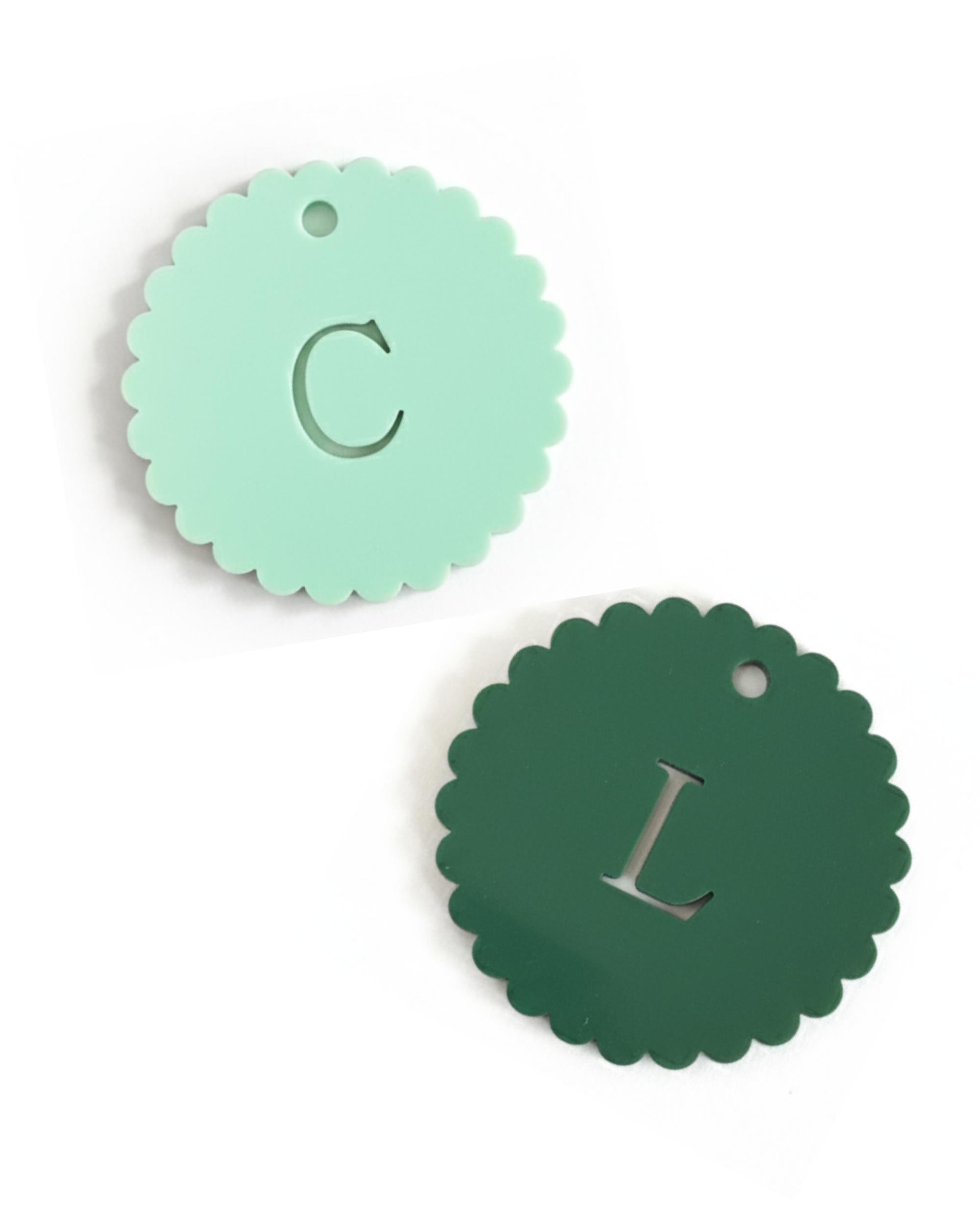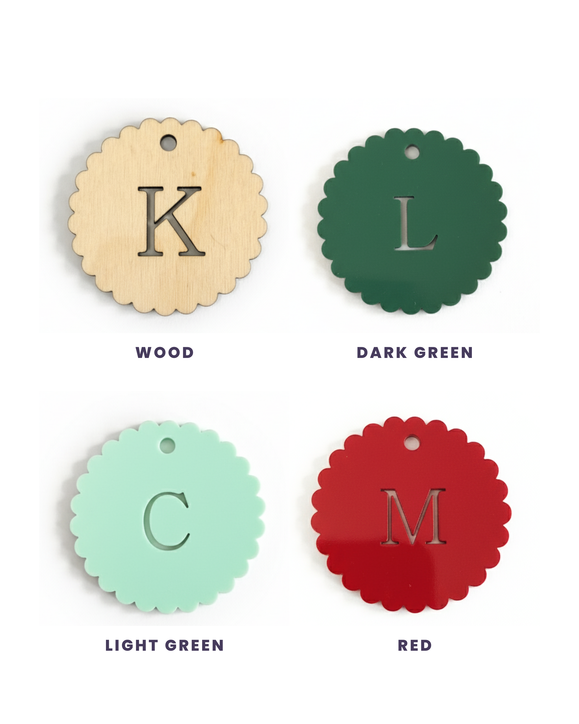 - Personalized Scalloped Monogram – Each tag is laser-cut with your chosen initial, creating a beautiful, customized accent for gifts, decor, or ornaments.